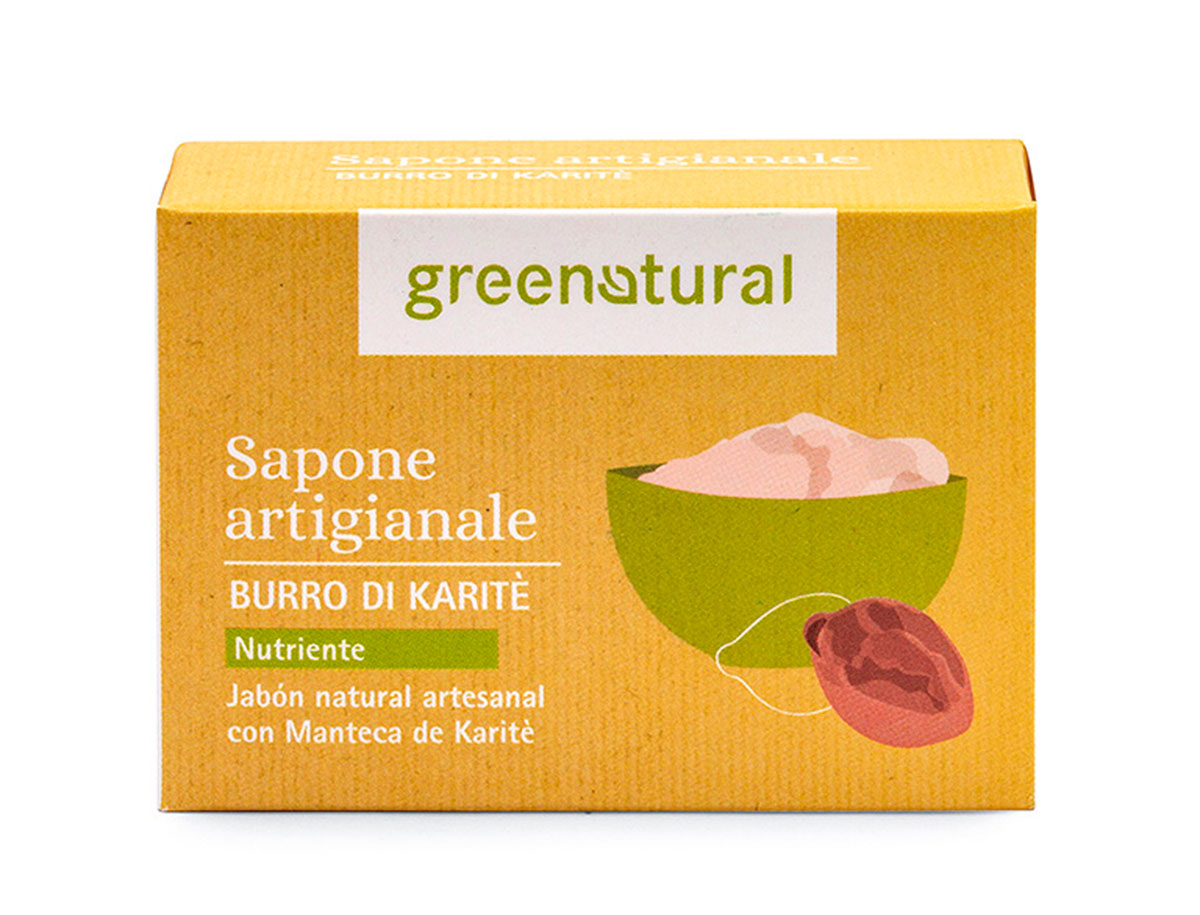 L’ecosapone Burro di Karité Greenatural viene prodotto in Italia usando recipienti di legno a cielo aperto e a temperatura ambiente. Gli ingredienti base sono di origine vegetale: olio di cocco, olio di oliva o glicerina vegetale, estratti fitoterapici, prodotti biologici ed essenze naturali.