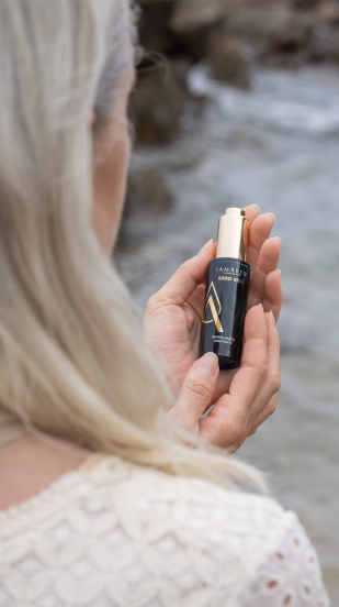 - 98% Acqua di mare: ricca di oligoelementi biodisponibili in grado di promuovere la produzione del collagene rimpolpando e distendendo le rughe di espressione e fornendo compattezza, texture ed elasticità alla pelle.